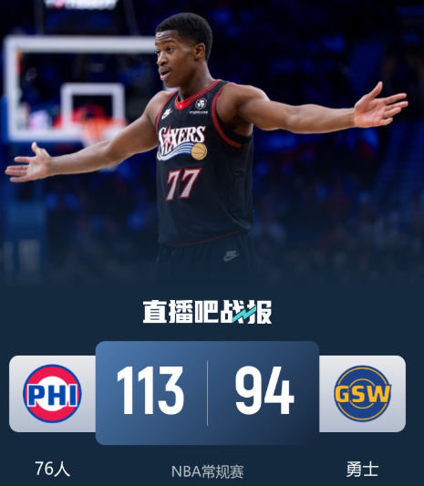 双核心缺阵!勇士主场不敌76人